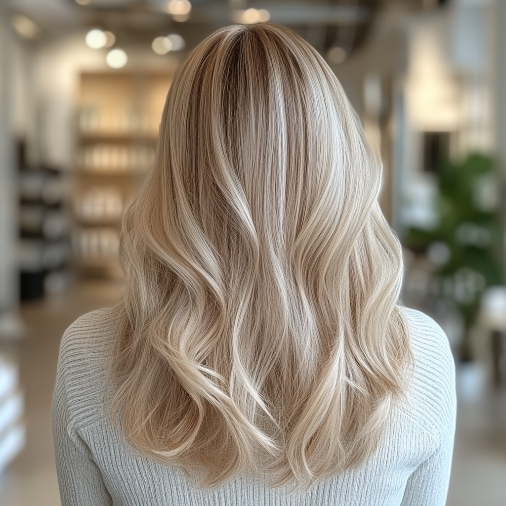 Жемчужный блонд — это холодный, перламутровый оттенок с лёгким серебристым или «ледяным» отблеском. Он сочетает в себе холодные нюансы, но без выраженной серости, что делает его эстетичным и модным выбором.