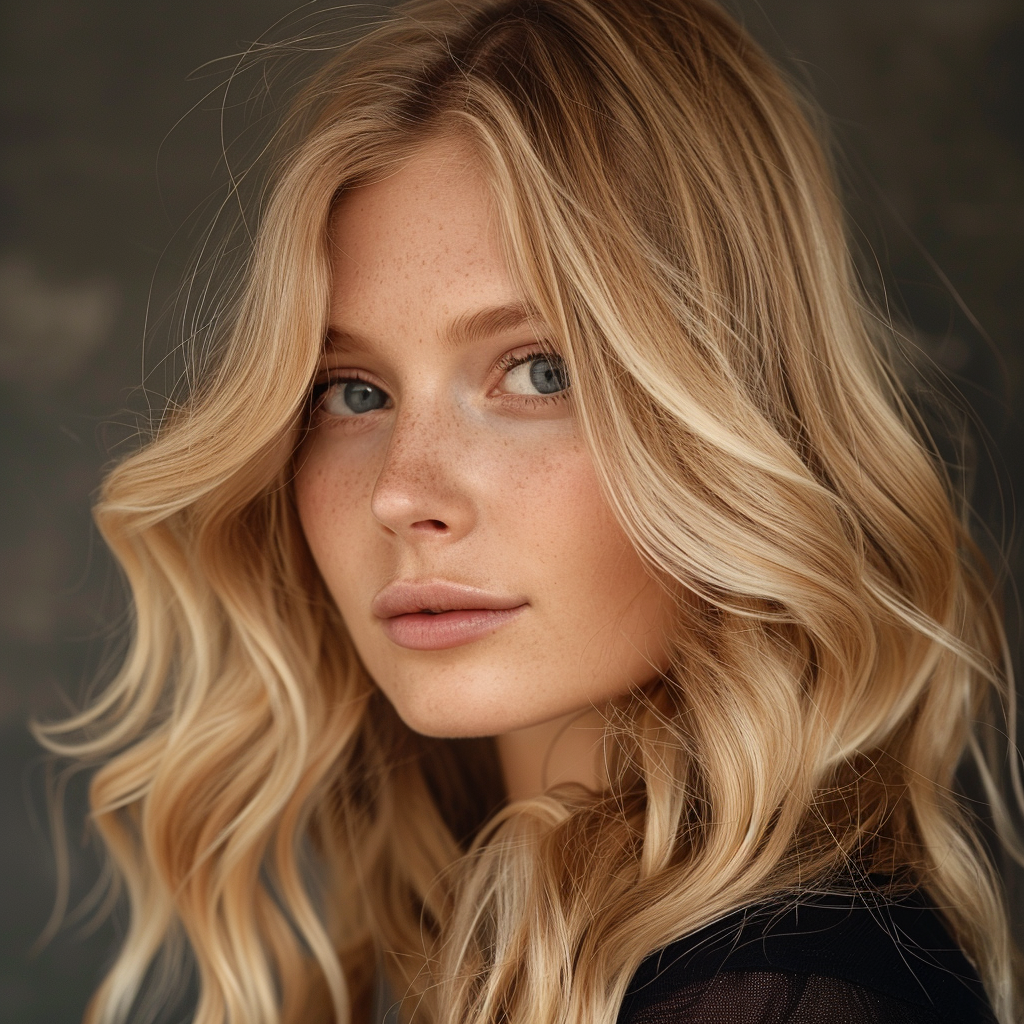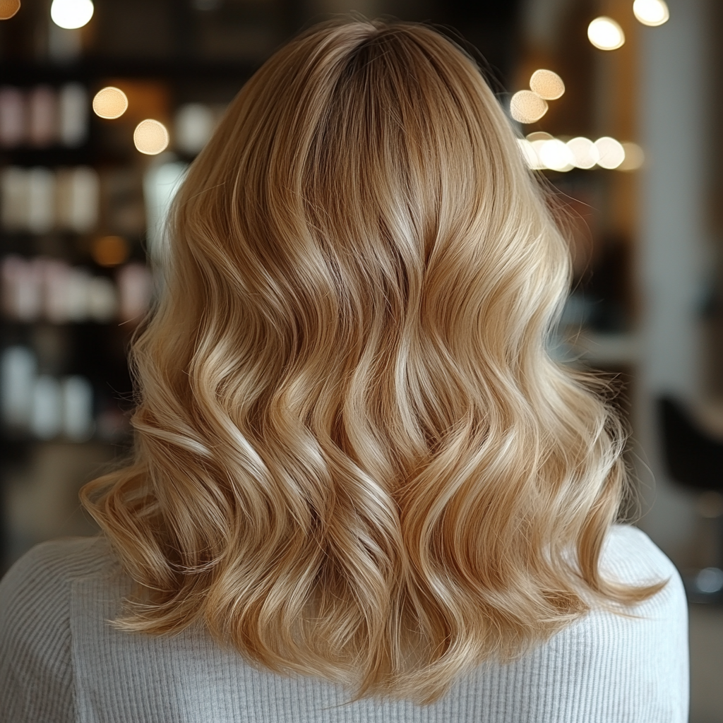 Золотистый блонд — отличный выбор, если вам идут тёплые и нейтральные оттенки и хочется эффекта «солнечных» волос. Самые универсальные варианты — пшеничный и золотисто-бежевый: они дают тепло, но выглядят аккуратно и современно.