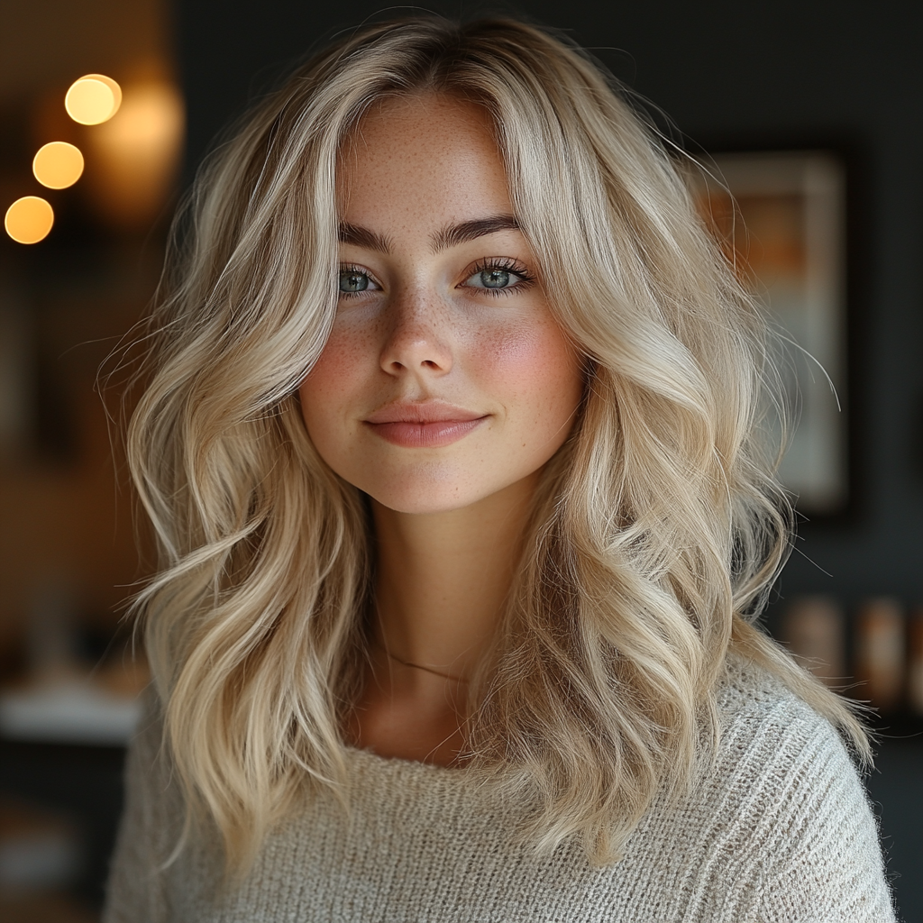 Сегодня молочный блонд часто выбирают те, кто хочет светлые волосы без агрессивного белого или платинового тона — он универсален и подходит как для повседневного образа, так и для фотосессий.